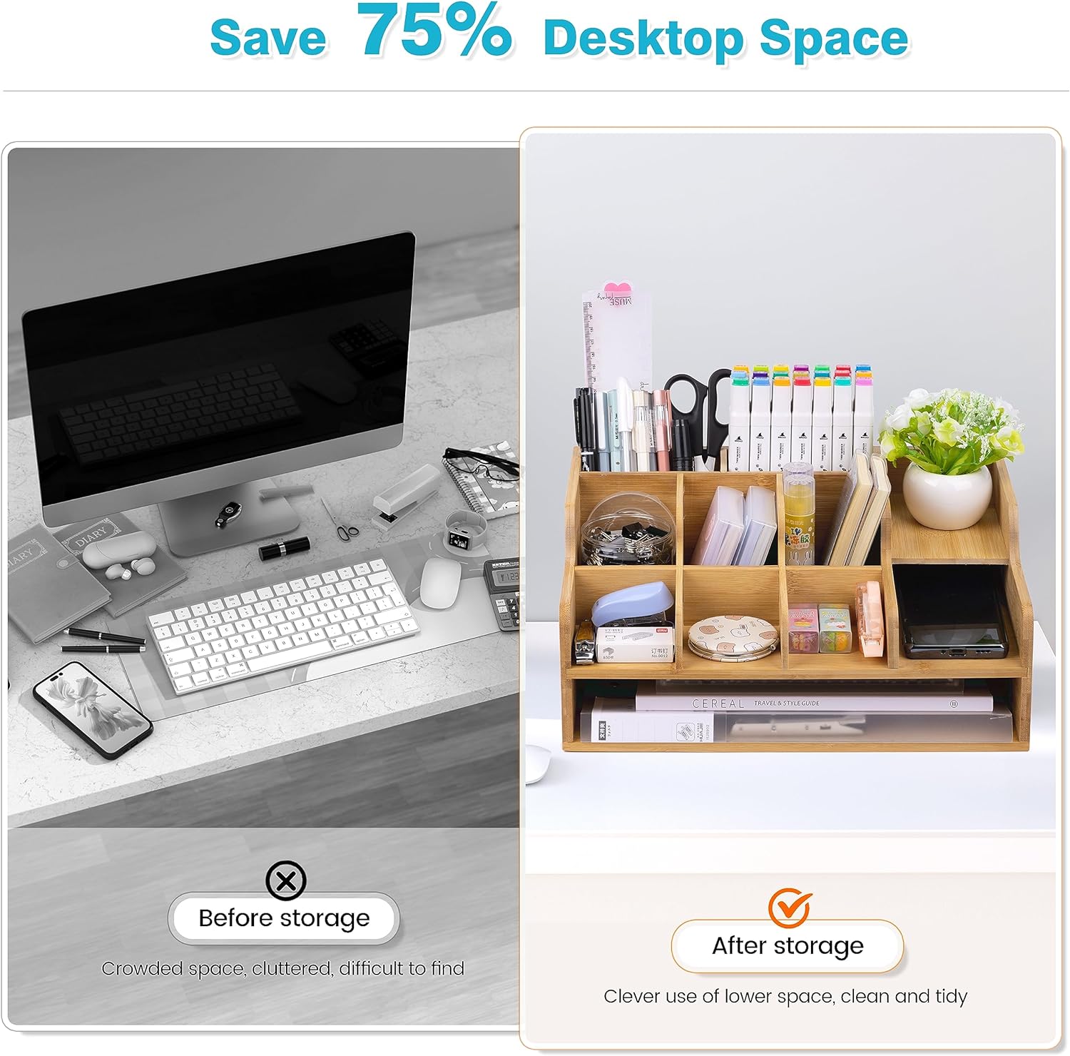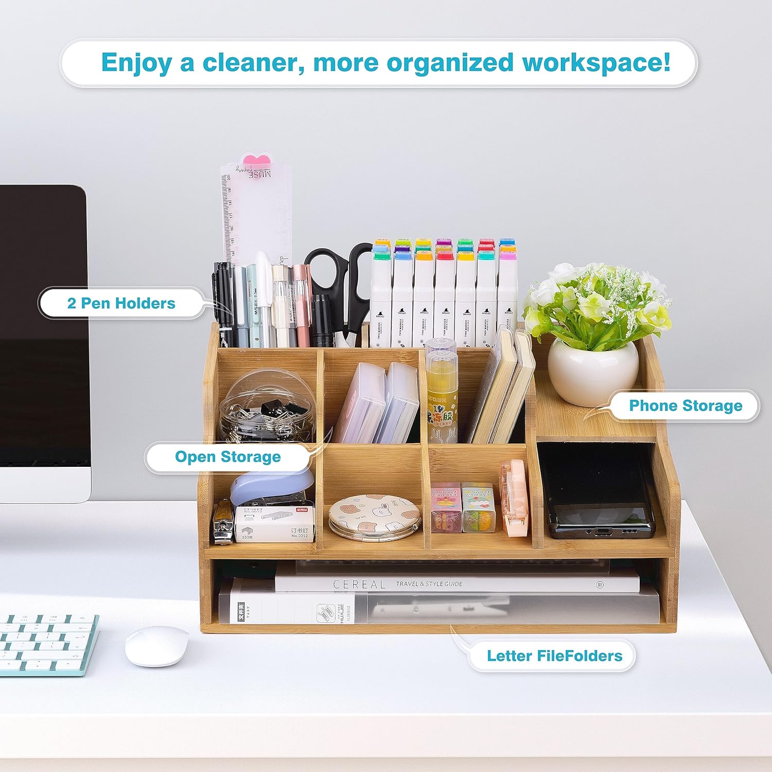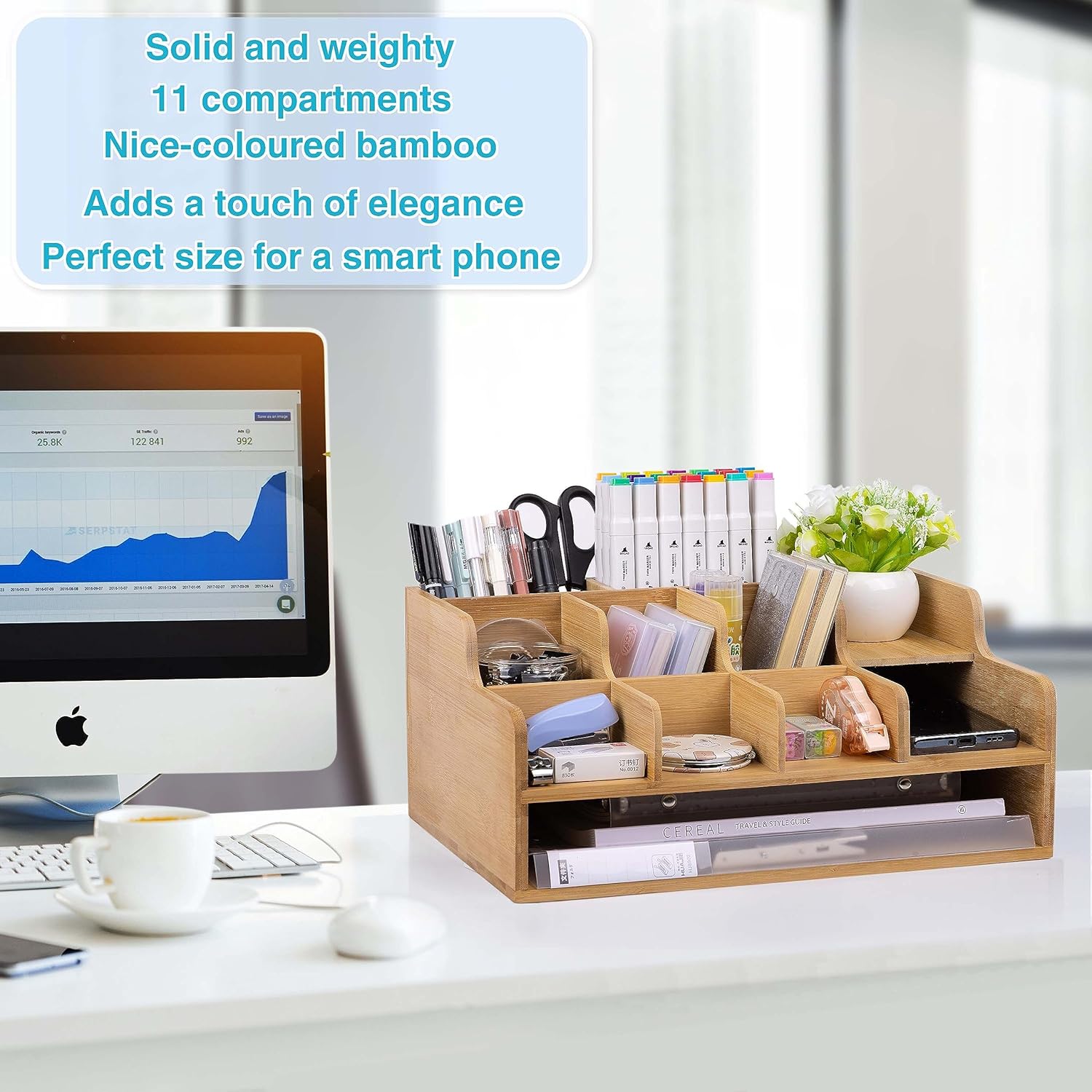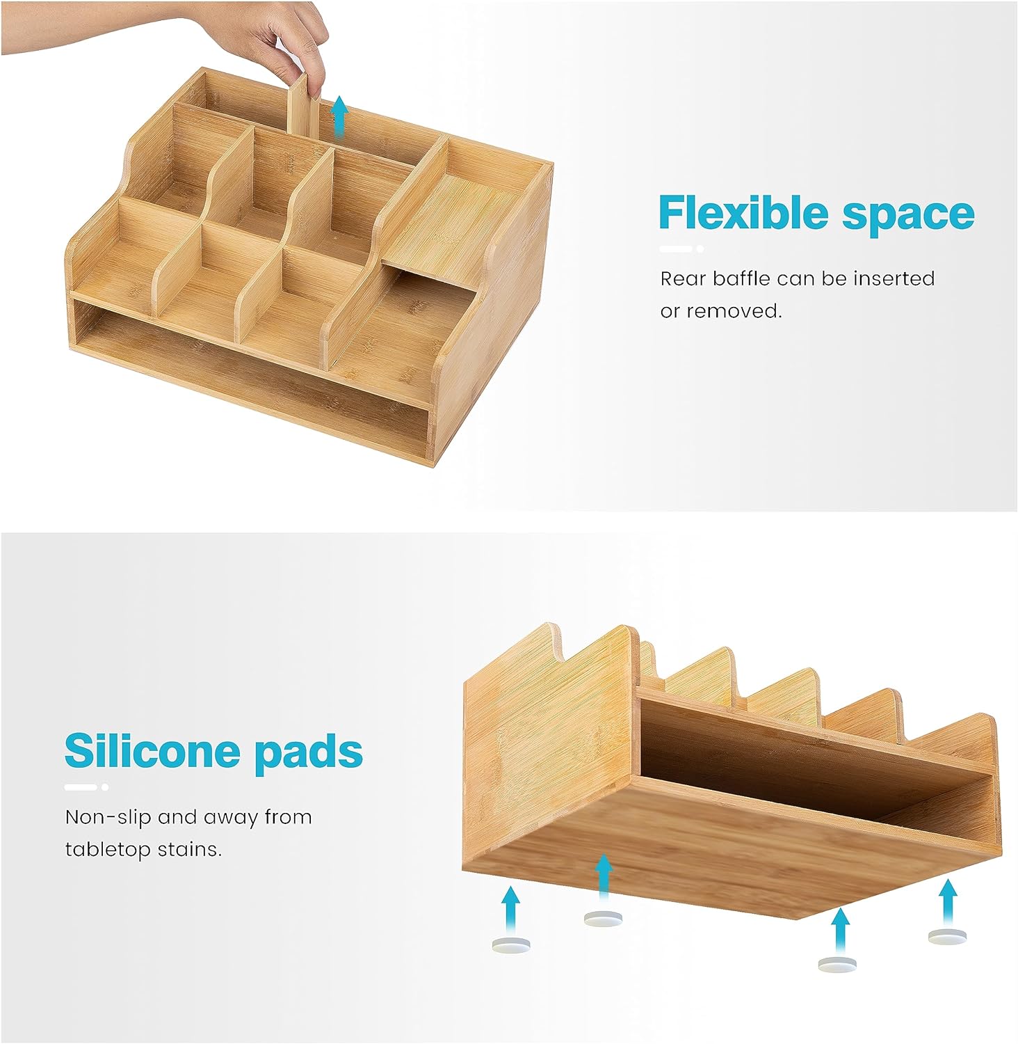 مجموعة منظمات مكتب من البامبو – قم بتنظيم الفوضى الخاصة بك بشكل أنيق، منظم البريد لسطح الطاولة، منظم المجلدات للمكتب، مثالي لتنظيم المكتب والتخزين