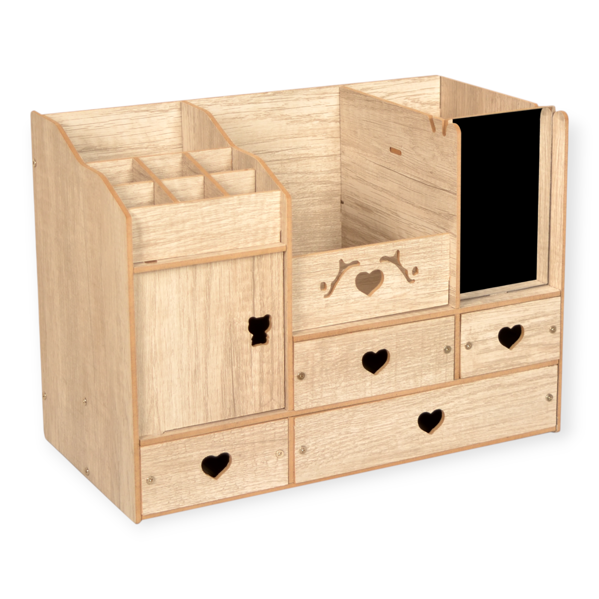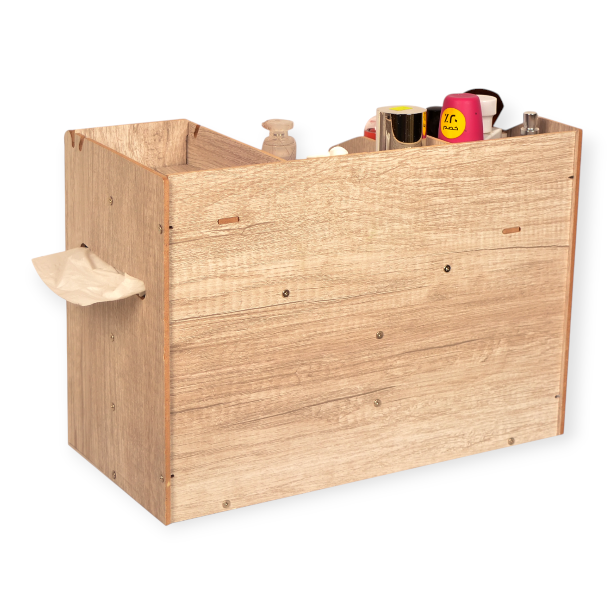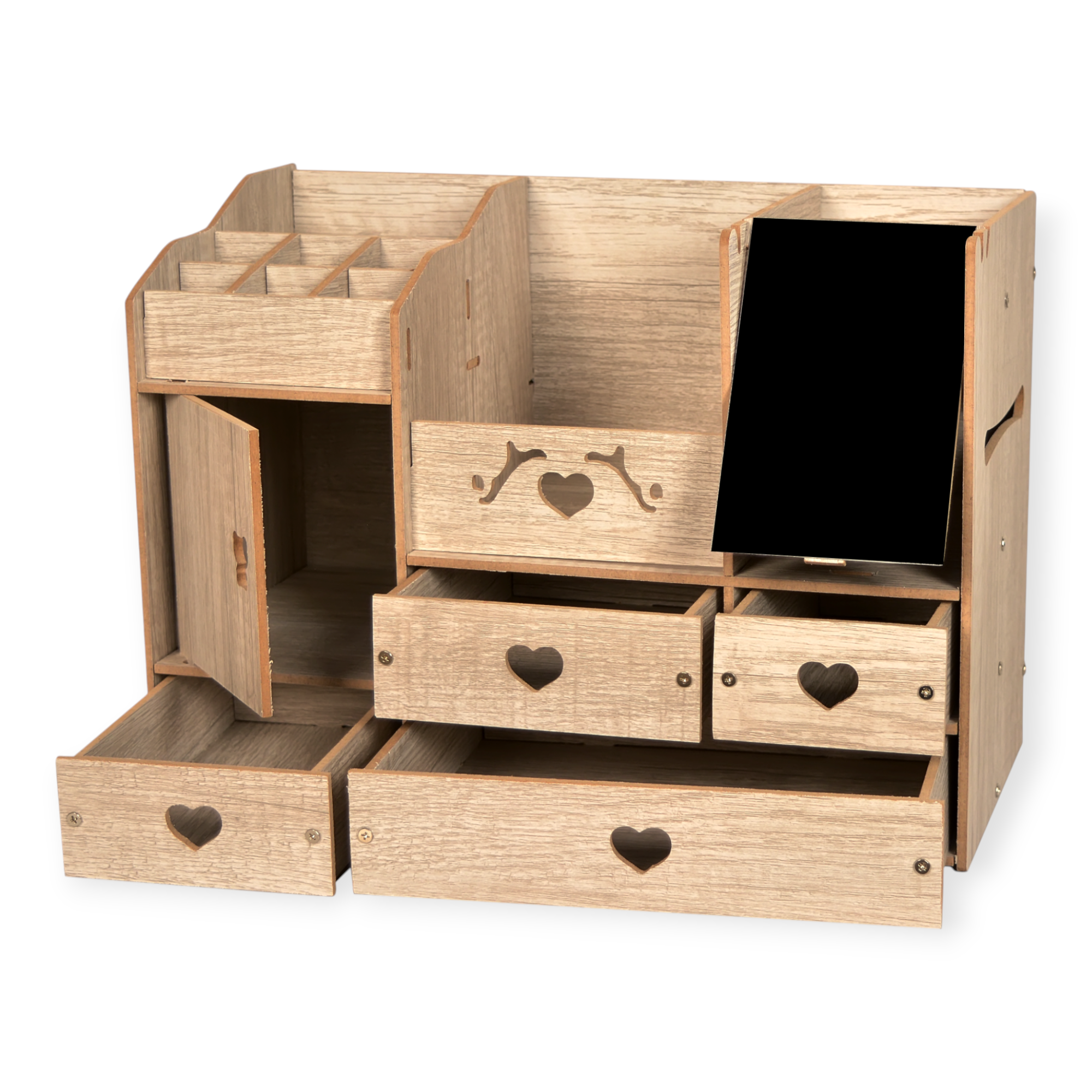 لسّه بتعاني من فوضى المكياج على التسريحة؟ منظم المكياج ده هو الحل المثالي! مصنوع من الخشب الصناعي عالي الجودة بلمسة وردية مطفية أنثوية، وبيضم 15 قسم تخزين من ضمنهم 4 أدراج بأحجام مختلفة، ورف مناديل مدمج، وكمان مرآة ميكب تشوفي فيها جمالك في أي وقت 💕